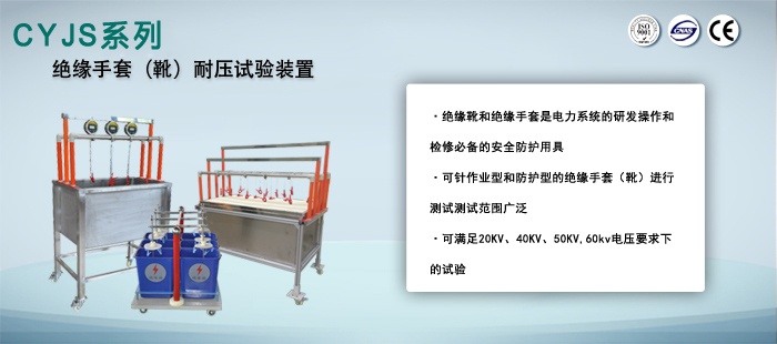CYAG-A系列智能電力安全工器具試驗裝置是根據國家最新電力行業標準而設計的、性能先進的智能型耐壓試驗設備平臺,本平臺主機采用了PLC控制器技術、2.4G ISM組網技術、結合優良的人機界面操作,使您在使用時輕松自如、得心應手。本平臺主機與我公司CYMA-2型智能高壓毫安表無線組網,結合各種輔助測試結構,就構成電力安全工器具綜合試驗成套裝置,精確測量多路高壓泄漏電流。本裝置能可靠地鑒別絕緣手套(靴)和絕緣拉桿的泄漏電流,絕緣老化和工頻耐壓等參數,可同時檢測六只絕緣手套(靴)和多根絕緣桿;配驗電器功能檢測裝置可對驗電器的起動電壓和抗干擾性能進行測試。若選配相關輔助測試夾具或配套電極裝置,可用于絕緣毯、絕緣墊、絕緣袖套、絕緣服、絕緣帽、絕緣梯、絕緣擋板、絕緣凳等絕緣工具的耐壓試驗。以考核產品的絕緣水平,發現被試品的絕緣缺陷,衡量過電壓的能力。